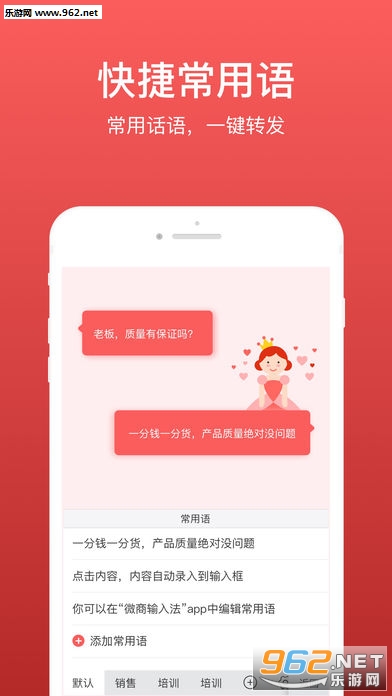 微商输入法是专门为微商定制的输入法!软件拥有丰富的微商词库语句,一键即可快速精准营销,清爽的UI界面、快捷的回复速度,微商朋友必不可少的一款手机输入法软件。