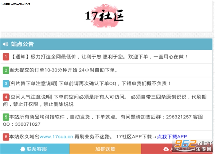 17社区代刷网是一款17社区-17代刷网-24小时自助下单平台,全网刷业务,在线刷qq空间说说赞,集名片赞、空间访客、免费拉圈圈等空间业务于一体的自助下单平台,全网最低价,下单后10秒开刷,最大的空间业务代刷平台。
