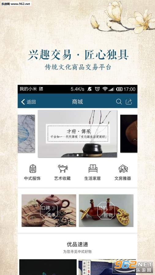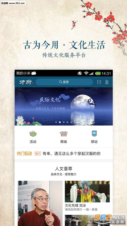 府就是一款以论坛、社区的形式带你了解中华传统文化的应用,你可以到“驿站”去了解你所好奇的传统文化内容,在哪里你可以提出自己的疑问,与他人一起探讨,并且你还可以在上面购买一些非常具有中国气息的物品等。