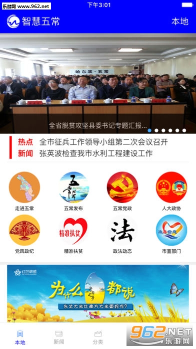 《智慧五常》APP是五常广播电视台官方手机客户端,是一款以提供五常本地新闻图文直播、电视直播、广播直播、便民生活等全方位的城市生活应用的移动客户端产品。目前,包括美丽乡村、学习教育、医疗卫生、阳光三农、五常旅游等六大板块。五常广播电视台及各大媒体的精品内容,进行各类突发事件的权威应急发布,通过个性化的精准推荐为广大市民提供全面城市生活资讯服务,成为五常千万市民“一手掌握五常”的公共服务传播平台。