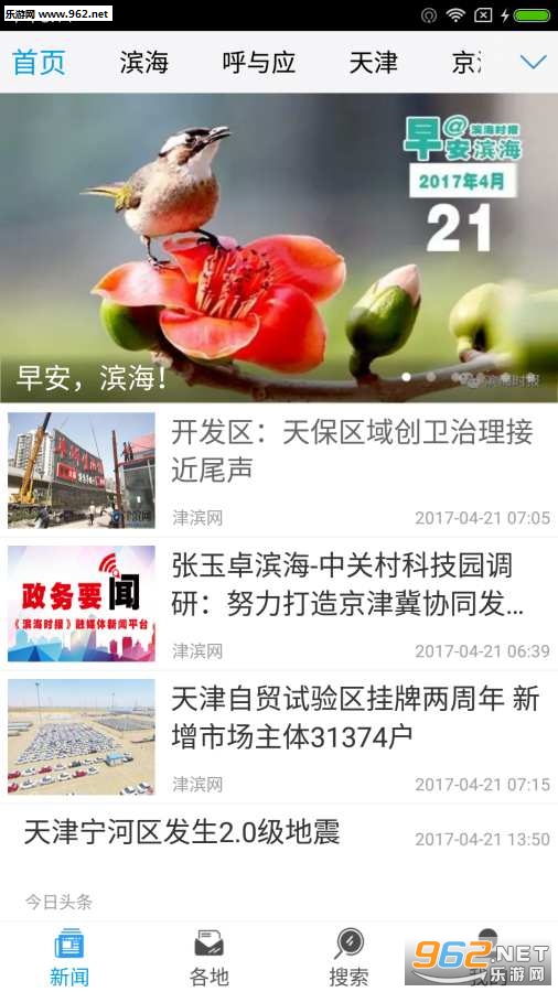 天津滨海app是一款地方性新闻资讯软件,为你报道滨海每日新鲜事,打造新闻资讯与生活服务相结合的现代化软件,还有各种国际新闻热点,国内趣闻等等,功能非常强大实用,快来下载吧!