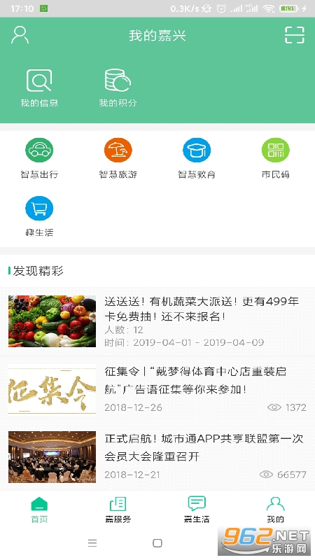 “我的嘉兴”是以嘉兴市民卡为入口,融汇连通“智慧嘉兴”城市大数据的嘉兴市城市生活服务平台。以广大市民能够足不出户、随时随地享受公共服务和便利生活为目标,为嘉兴市民提供全方位、一站式、个性化、方便快捷的城市生活服务。