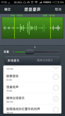 录完音后选择你要变的声音(男人、女人、萝莉、快速、马路等等)以及音效(鼓掌、怪兽、赌神出场音乐)等。