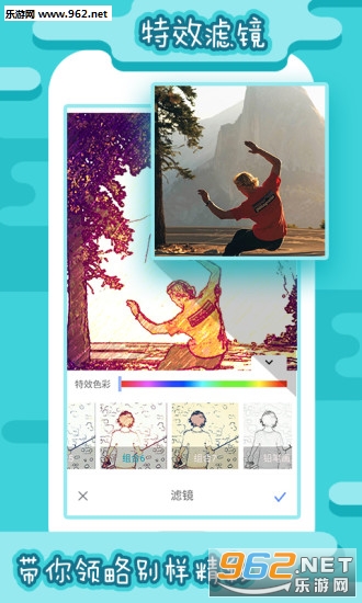 2、超赞滤镜,炫出自我!精选几十种高端滤镜,各种风格任你挑选,演绎无限炫酷效果!让你晋升摄影达人,拒绝平庸,给你的照片来点属于自己的freestyle吧!