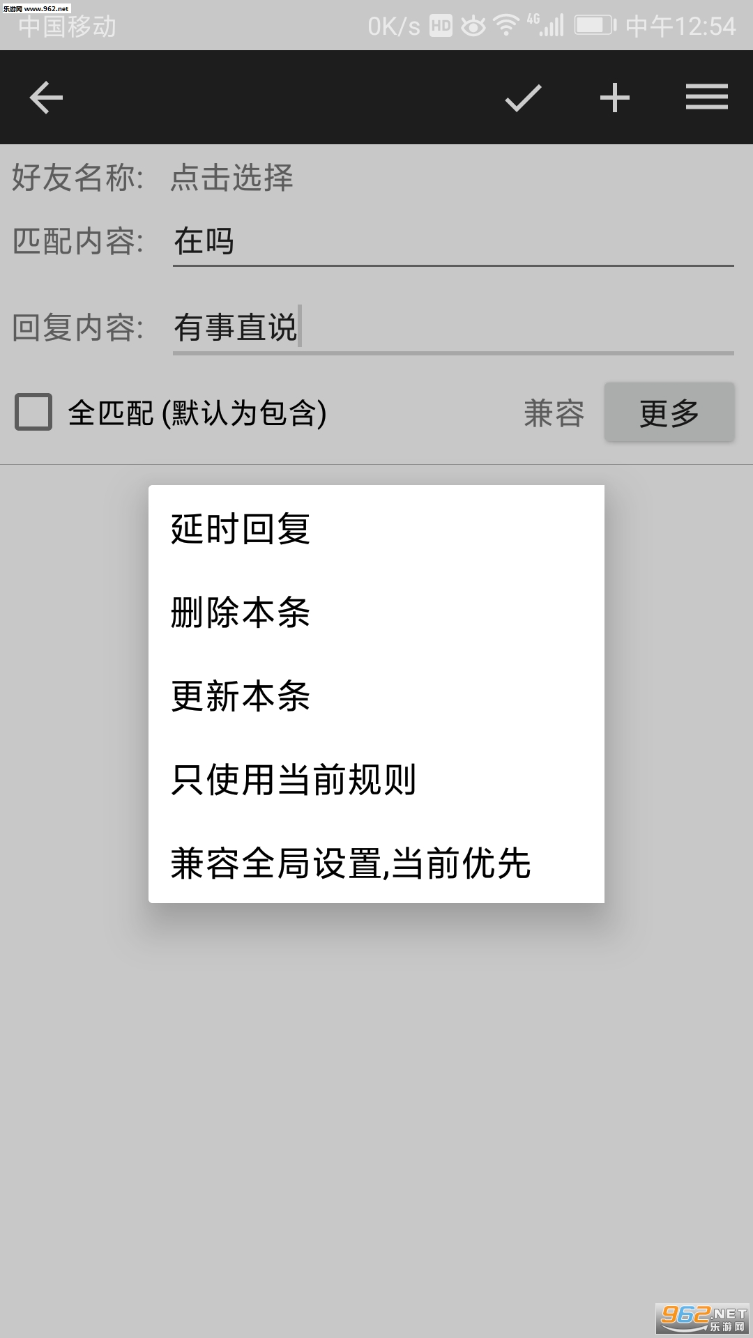 3.软件支持自定义的内容回复,可以针对各种情况的进行自动回复,尤其给喜欢玩游戏的朋友一个清静的世界。