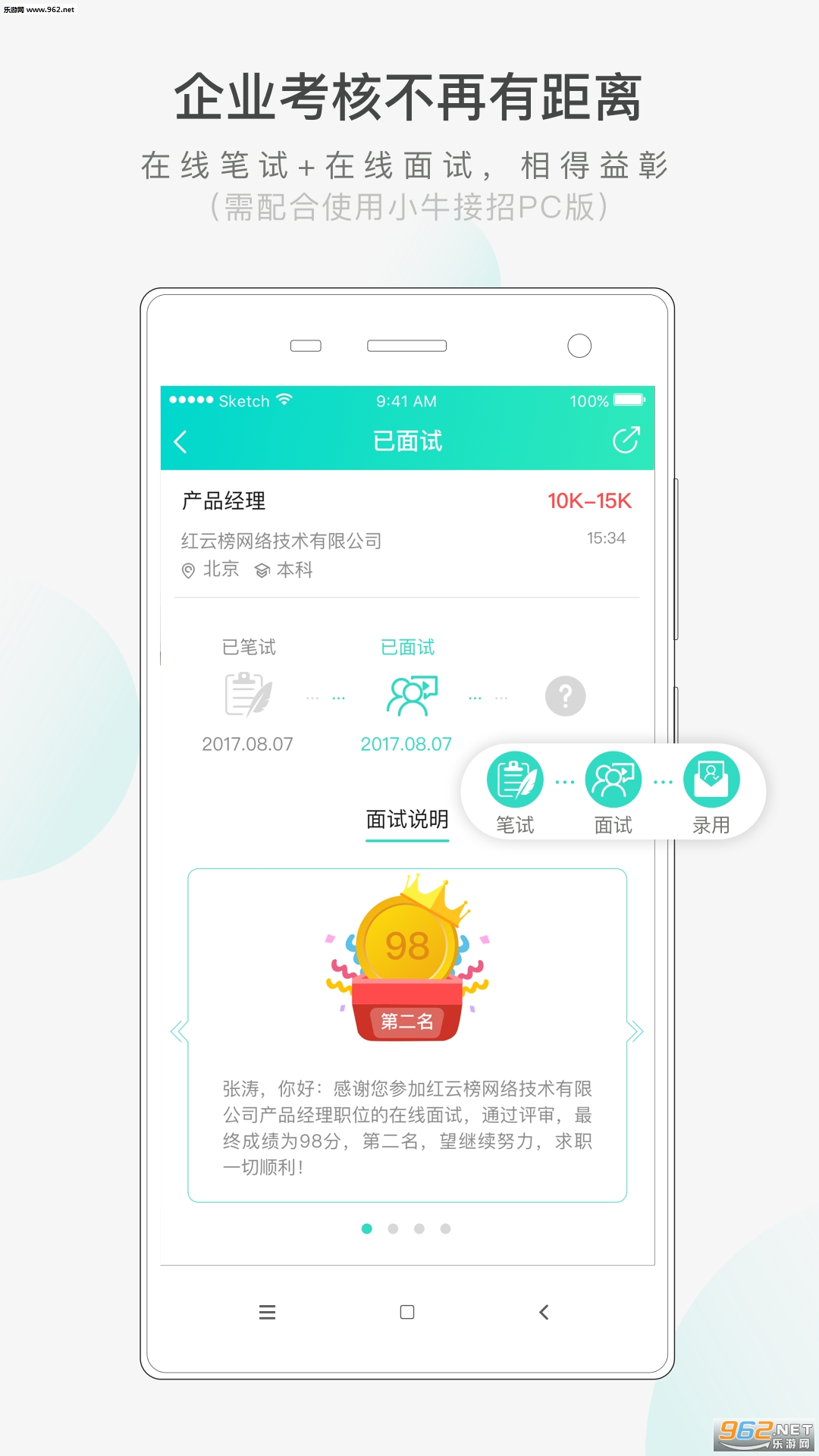 帮助用户看清一种职业的上升空间,直接在线笔试面试,足不出户找到心仪工作!