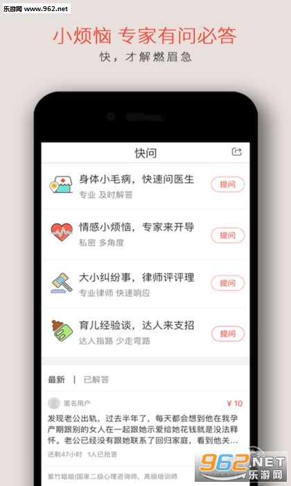 围绕健康、法律、心理、情感等与生活紧密相关的领域,你可以匿名提问,一次获得多位行家的语音回答,每个问题平均响应时间在一小时内.