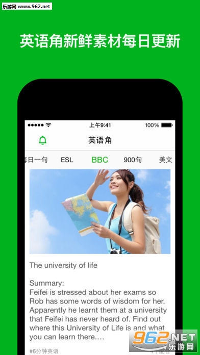 每日更新:BBC双语新闻、6分钟英语、随身英语、纪录片等,是你学习BBC英语的不二之选。