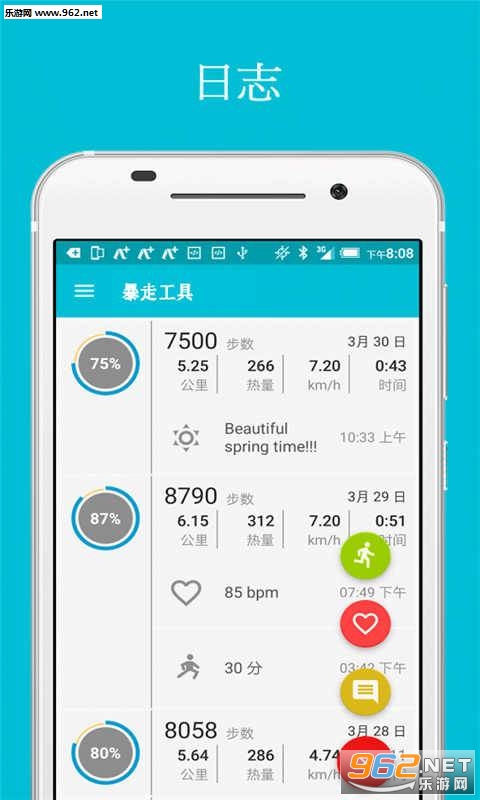 首先暴走本是锻炼身体的一种好运动,同时,让人清爽释放,我也爱走路,不过没有达到25-30公里,我也曾体验过暴走后的轻松,爱暴走的人不用这款《暴走工APP》太可惜了!这款简约清新的计步器工作当你开始行走时会显示虚线走势,就和心电图一样,每天都会记录下你的步伐,距离,卡路里,行走时间,让你更省心的锻炼!