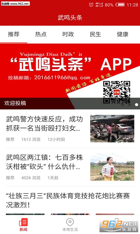 《武鸣头条app》是一款本地生活服务类app,软件功能丰富,用户可以直接利用此软件了解本地的一些热点资讯,掌握本地的实时动态,还能解决本地的一些日常生活问题,了解本地的特色美食,需要的小伙伴快来下载吧!