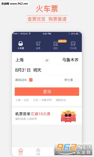 携程旗下2026年/国庆抢票神器,随时随地购买火车票、退票、改签;官方票源,全程免费;票种多样,成人票、儿童票、残军票、护照购票应有尽有。全国长途巴士时刻表查询订票管家。