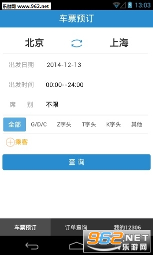 输入出发地-目的地,选择乘车日期,查询余票即加载到列表.
