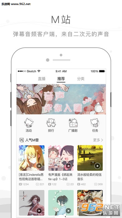《猫耳FM手机版》是M站(MissEvan弹幕音频网)官方客户端,专门为漫迷们打造的音频分享社区。这里有来自二次元的众多“好声音”,音加图片、有声漫画、动漫配音、歌曲等优质资源。不论是上下班还是睡觉前,来猫耳FM,让你的耳朵聆听来自二次元的风情!