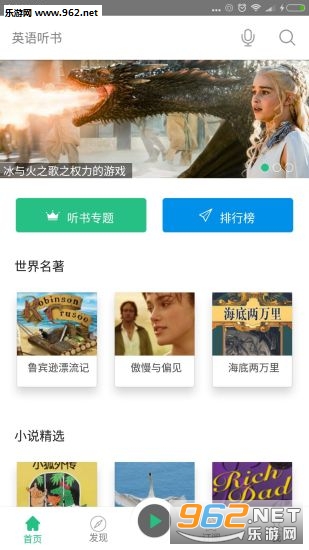 英语听书是塔塔出品的移动英语听力软件,涵盖英语世界名著、小说精选、名人传记、总统演讲、TED演讲、名人演讲、故事天地、有声读物、经典电影、经典美剧等一系列英文阅读听力资源