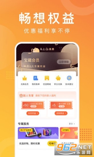 《马上普惠安卓版》是一款疯狂买买买就疯狂送优惠券的购物商城app。为你带来折扣购物的同时,确保所有商品都是正品。正规渠道正规购物,邀请用户还送奖励,感兴趣的小伙伴还在等什么?欢迎来962下载体验试试吧!