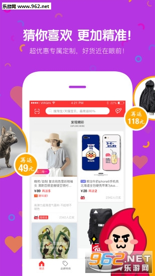 汇集淘宝,天猫海量返利商品,覆盖面广,返利额度高,官方渠道返利安全、精准。