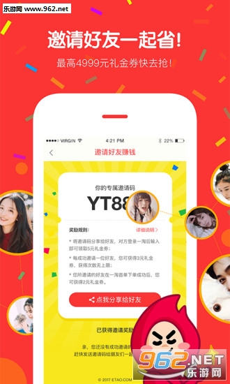 5.每月22日一淘福利日,0元抽大奖,领现金券,发集分宝,更有专属福利商品。只等你来!