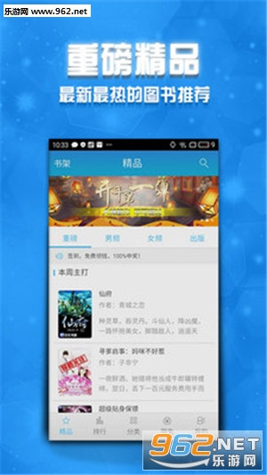 2.海量藏书,分类齐全。都市小说、东方玄幻、修真仙侠、总裁豪门、古代言情等各类小说一应俱全;