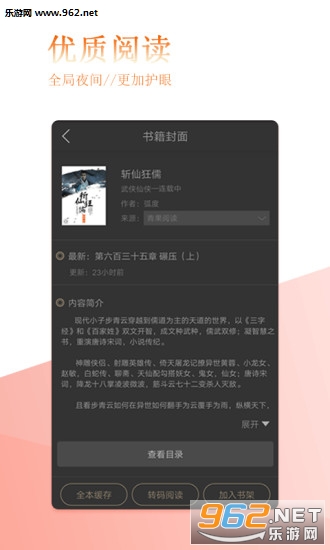 1.海量书库智能切源,界面简洁精美,流畅翻页轻松阅读,超优阅读体验让您拍案叫绝!