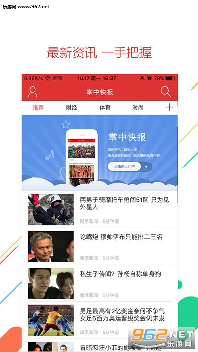 掌中快报是一款丰富、及时的新闻资讯APP。聚合多渠道,更有热门新闻类网站入口,为用户提供高效优质的全方面的热点内容。一机在手,博览天下,让你最早了解更多热门资讯。