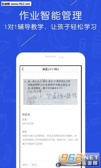 一、拍照纠错。每天拿手机轻轻一拍,上传作业,1小时内即有老师完成批改。