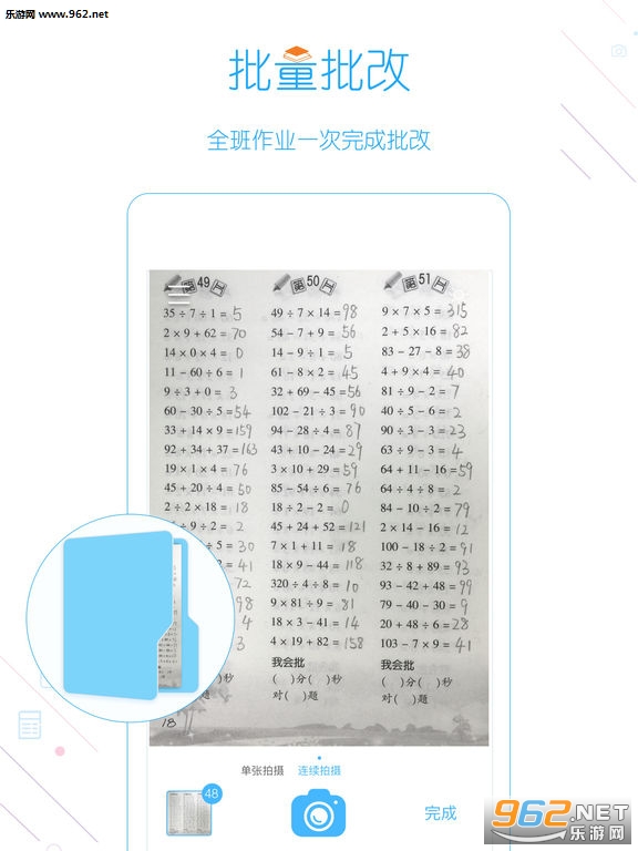 作业批改:老师批量拍摄全班口算作业本,一次性完成批改,改作业不再机械而枯燥