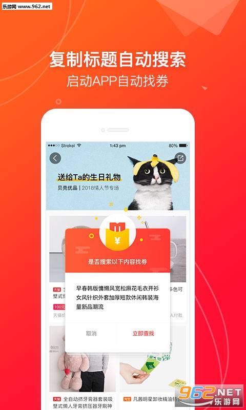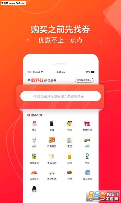 汇集了淘宝、天猫等上百万信誉商家大额折扣、优惠券的导购平台。