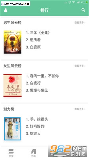 3.书城定期推荐男、女生最爱书目,定期更新排行榜单,拯救你的书荒;