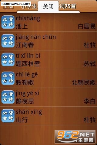 古诗听读收录了小学生必背古诗词75首。为照顾中低年级学生的需要,添加了汉语注音,和真人朗读。