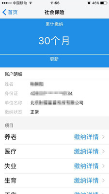 2、社保查询:查询基本养老、基本医疗、生育保险、失业保险、工伤保险等缴费信息;