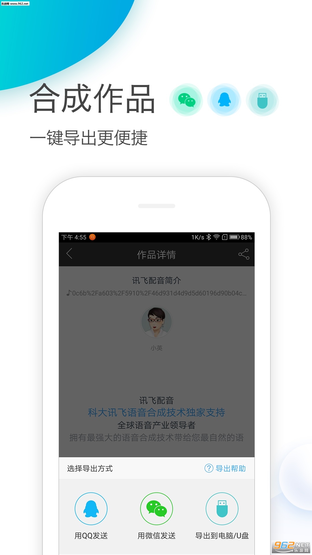 讯飞配音是科大讯飞旗下一款利用语音合成技术将文字转成语音的产品,科大讯飞作为国内代表性的语音技术提供商,在语音研究上具有深厚底蕴,在语音合成效果方面领先于谷歌、苹果等国际公司,占据国内语音产业市场份额80%以上。作为一款专业配音工具软件,讯飞配音制作简单、高效,旨在为用户提供优质的一站式配音服务。