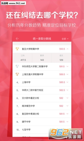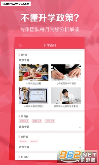 同时也可以查询到部分地区各重点高中历年录取分数线;当孩子处于升学阶段时,家长可以在APP中找到孩子需要的试卷、资讯、升学政策等信息,再也不会因为升学信息闭塞而苦恼。