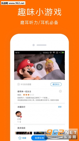 上万个精彩电影视频任你配音!超级智能、方便的配音功能,只需几步操作,即可将你的声音逐字逐句完美地嵌入电影的对应画面中,仿佛身临其境,让你充分体验电影主角的快感。此外,我们还提供了数千个外文电影视频供你练习外语听力和口语,让你在娱乐的同时轻松学会一门流利的外语,上线以来受到配音爱好者和外语学习者的狂热追捧。