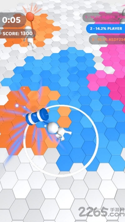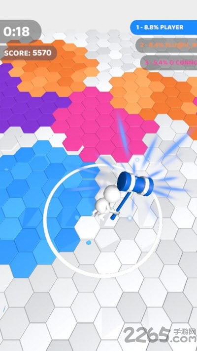 锤子淘汰赛是有趣的卡通闯关游戏,Q版卡通游戏主题风格场景,拿起你的锤子在由六边形组成的场地中砸地,将所有的白色六边形方块染成与锤子相同的颜色,需要将整个六边形地图涂满颜色,在时间结束时占场地最多颜色的玩家获得胜利。