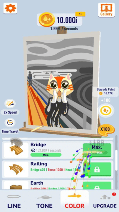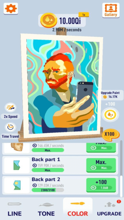 添加了独特的升级系统,你可以将已完成的画作售卖,获得金币解锁更多的能力和模板。