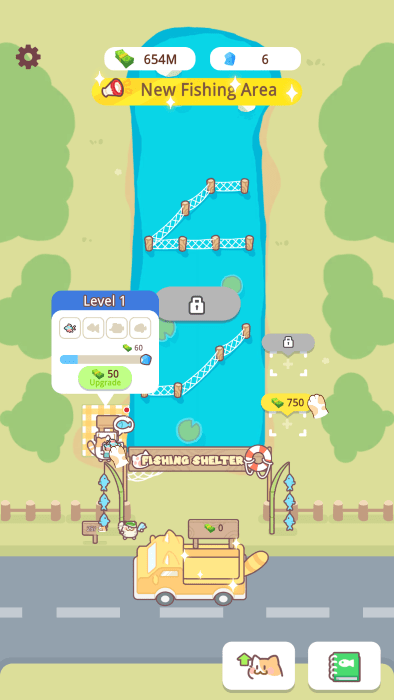 增加钓鱼的位置,吸引你的猫咪来钓鱼。