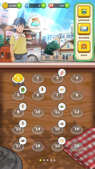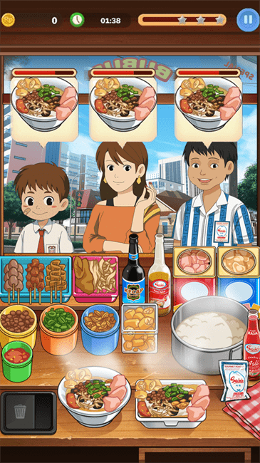 鸡肉粥快递是一款模拟经营的摆摊游戏,一般又叫“来碗鸡肉粥”,英文名为“Bubur Ayam Express”,讲述了一个年轻人回家的故事,他回想起了很长一段时间认识的祖母的鸡肉粥,但是他发现了一个关于祖母的令人惊讶的事实。玩家进入游戏后会有不同的关卡,通过解锁不同的关卡场景,前往售卖鸡肉粥。在这里会有很多顾客前往光临,请按照他们的需求制作鸡肉粥,并且售卖。并且你还能够扩大经营规模,并解锁更多的食物和菜谱,为你的店铺增加人气,同时在这里还有外送的功能,帮助大家从不同的途径去获得利益,游戏里有着需要感人的剧情故事伴随游戏,你可以不断扩大小店,从而发家致富,不断将鸡肉粥发扬光大,争取成为整个印尼里最好吃的粥铺!