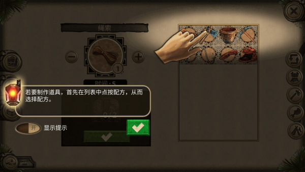 若要制作道具,首先在列表中选中配方,就能看其中缺少的材料,在制作。