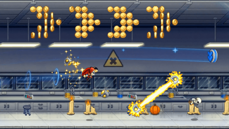 《疯狂喷气机 Jetpack Joyride》既拥有十足的刺激感,又包含了许多娱乐元素的横版跑酷射击游戏,你所控制的特工带有的Jetpack既是飞行工具,也是能够喷射无数子弹的利器,飞过之初寸草不生!当然《疯狂喷气机》里的敌人也不是吃素的,除了一开始的道道电网外,很快就有一触即碎的激光,以及瞬间飞过的导弹,玩家不仅要完美躲过这些,还得注意一路收集道具哟!