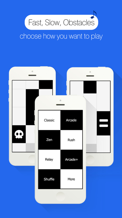 别踩白块儿游戏中,随着音乐的节奏不断有黑白钢琴块下落,而你需要拥有极高的手速和反应能力点击所有下降的黑色方块,你能够做到吗?别踩白块儿,这就是这个游戏唯一的一个规则,很简单吧?谁都可以会玩,但并不是谁都能玩得很好噢. 你呢?你玩得怎么样?