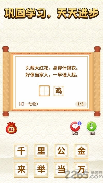 非常有趣好玩的益智类闯关游戏,游戏内涵盖成语、歇后语、故事、常识题等多种题型,玩家在游戏中需要答题成功,完成关卡挑战,让你一边游戏还能学习更多的成语,一举两得,感兴趣的朋友快来下载吧!