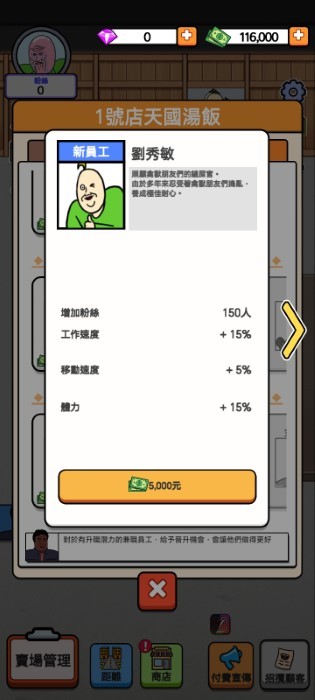 巷弄食堂大亨最新版雇用短漫热门角色刘秀敏、当当、炫植、秀当和鸟脑袋,