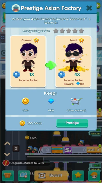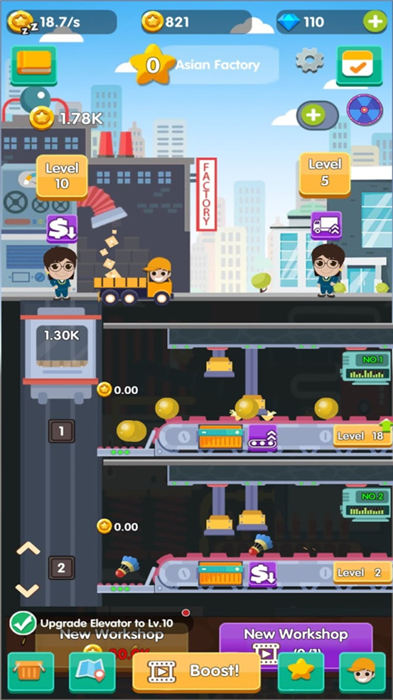 5、包括增加工厂的规模和器具工人等,享受最舒适放松的挂机游戏过程;