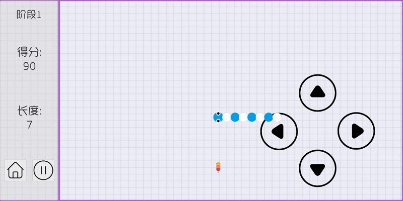 3、贪吃蛇的姿势完全由玩家来控制,不可以违反物理定律,不可以向后和向下弯转自己的身体,带来有限控制。
