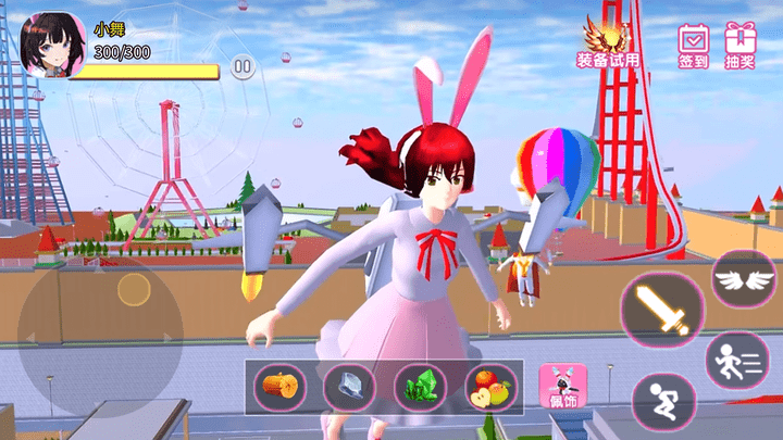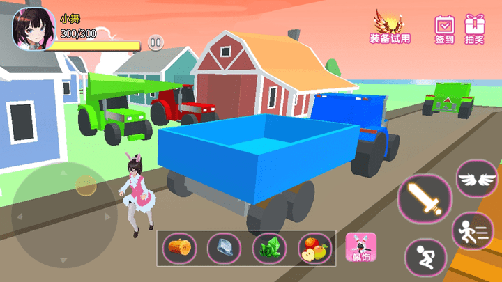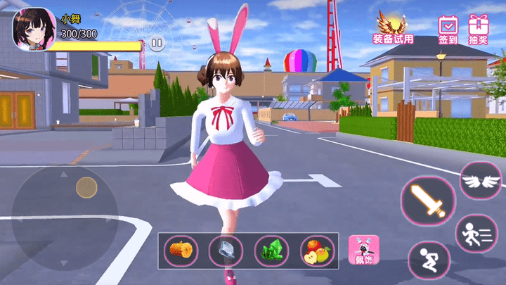 2.游戏中你将操控小舞姐姐在樱花校园的世界里尽情冒险,打败怪物、收集材料、赚取金币购买华丽的服饰