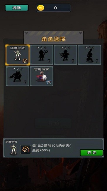 1、提供了多种不同的像素图形供玩家选择,每个角色都有不同的技能。