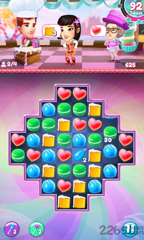 3、消除2x2个糖霜管,为顾客清出一条道路,找出藏在甜点下方的好友!