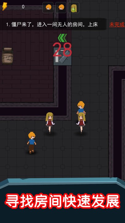 1、玩家需快速躲进房间关闭房门并上床发育。