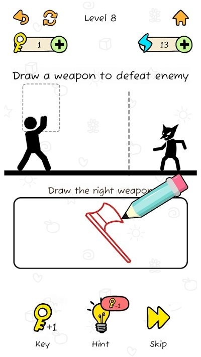 画出武器手机版是一款超级好玩的全新精彩模拟趣味挑战游戏,能够在游戏中的根据自己实力来绘画出武器战斗,简约风格画面十分具有趣味性,随时都可以闯关挑战,超多精彩等你来玩,能够展示出你超强的绘画能力,喜欢玩就来下载试试吧!