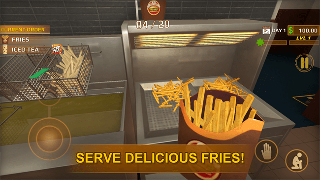 在这个3D快餐模拟游戏中,接受顾客订单,烧烤多汁的汉堡,提供香脆的薯条,并倒上清爽的苏打水,让顾客满意!通过高品质图形体验前所未有的快餐体验。